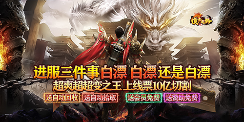 上线登录就送海量货币,10亿切割,基础自动回收自动拾取更不在话下!半包烟即可获取霸服礼包!120阶剑甲、三倍回收、自动巡航、冠名特权、满级赞助全都有!福利大厅更有上万红包等你领取!升级领好礼,轻松票终极!进服只需三件事:白漂、白漂、还是白漂!本服BOSS哐哐爆充值!每日击杀任意怪物,海量充值,材料送送送!使用全民赞助福利卡奖励翻倍!