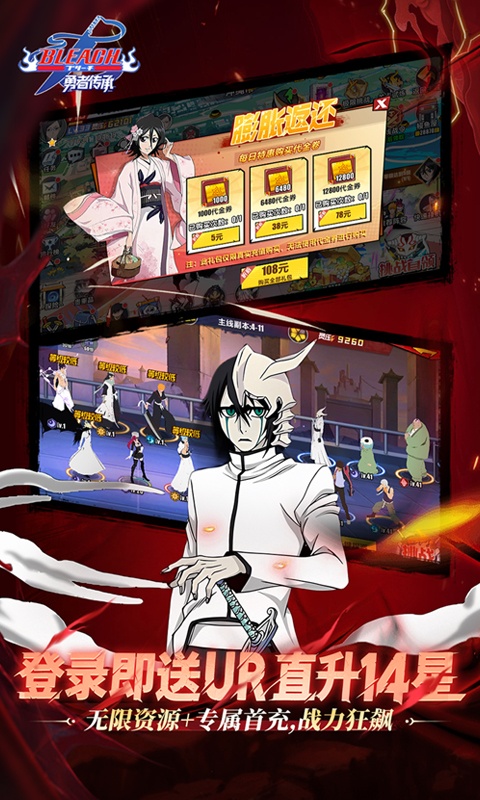 3、9日登录UR角色直升14星,连续闯关、签到送双倍千抽豪礼